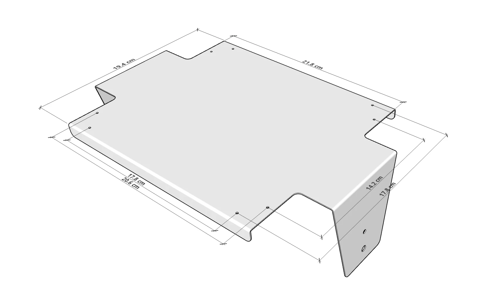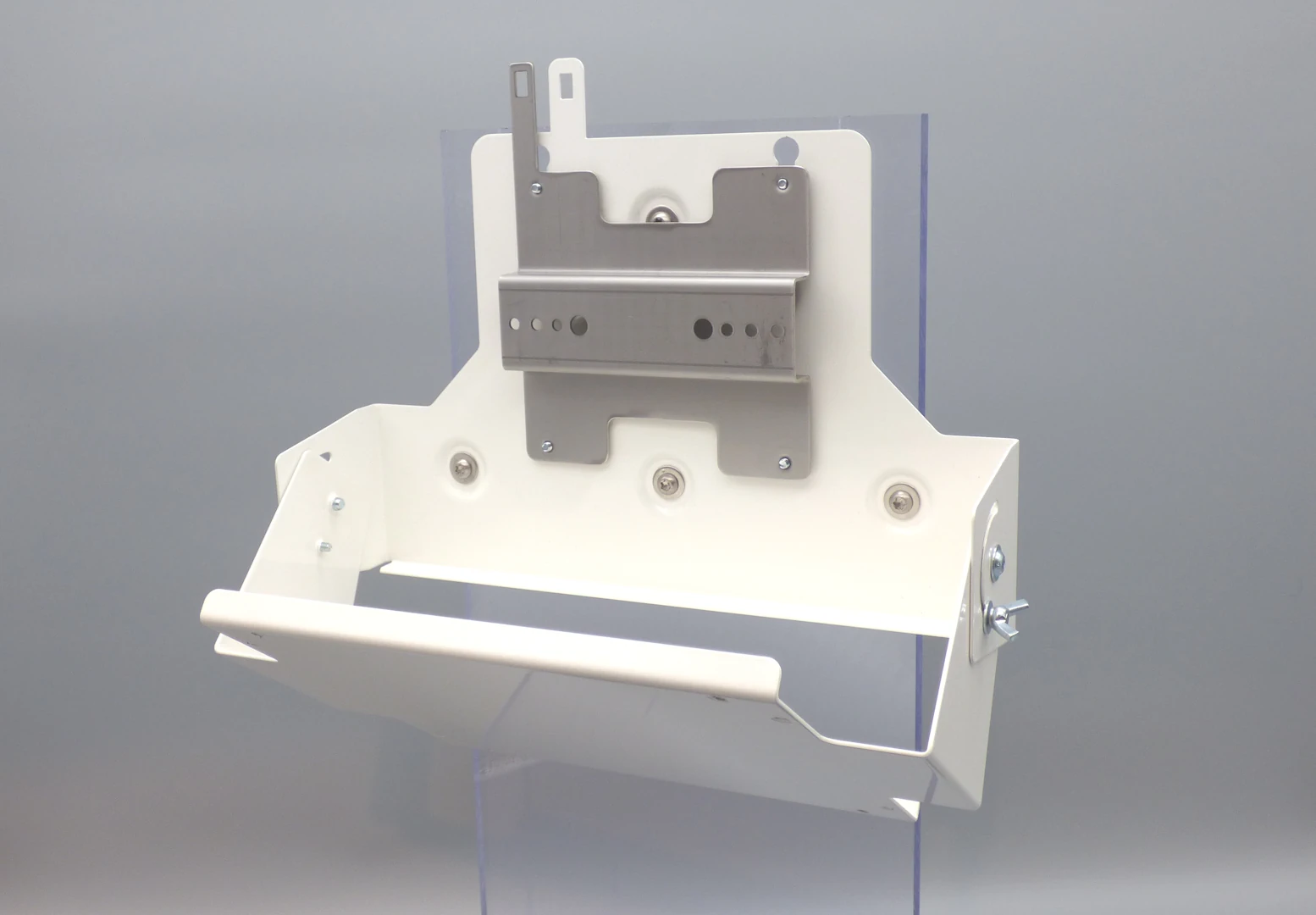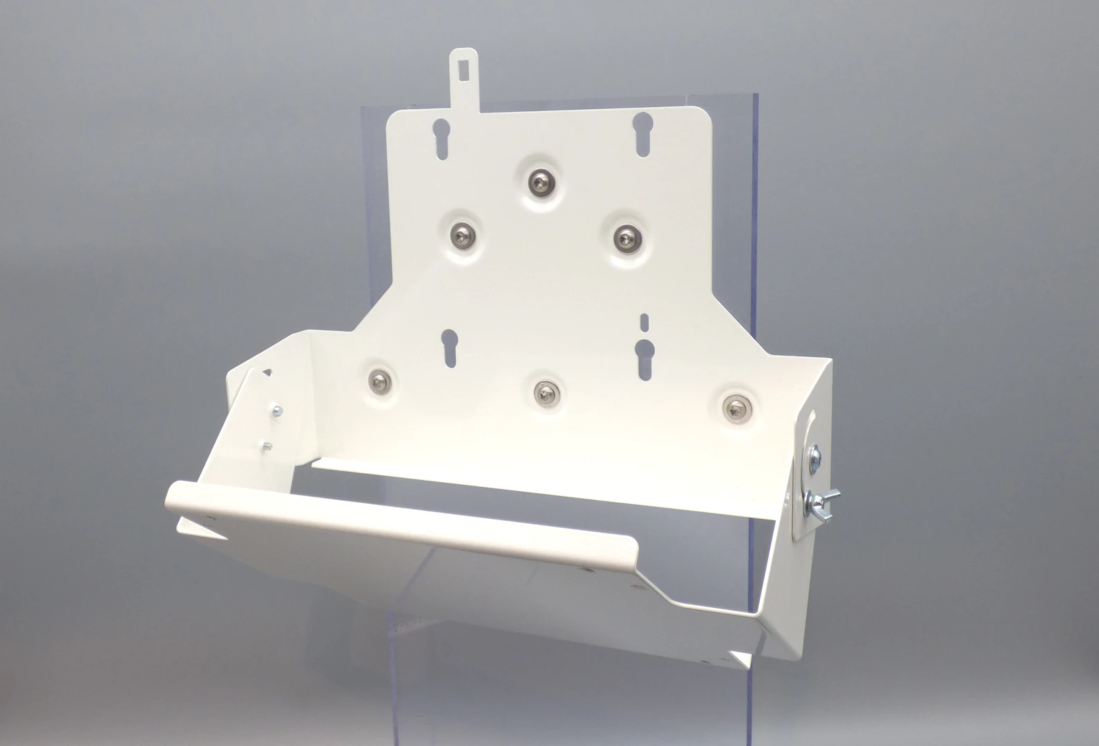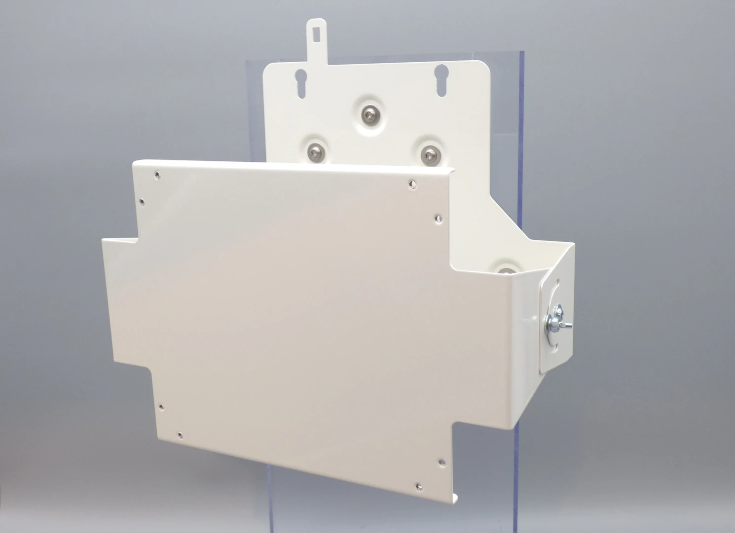 The combined mount for Aruba Access Points and patch antennas enables space-saving installation of Aruba Access Points with external patch antennas on walls or ceilings. The antenna is attached to the front section and – together with the front – can be tilted approx. ±15° to ±30° up or down depending on the access point in use. This saves both space and installation time, as only one mount is required for both AP and antenna. Material and color match our other indoor mounts: 1 mm zinc-plated steel, powder-coated, standard color white (RAL 9010); additional colors available upon request.