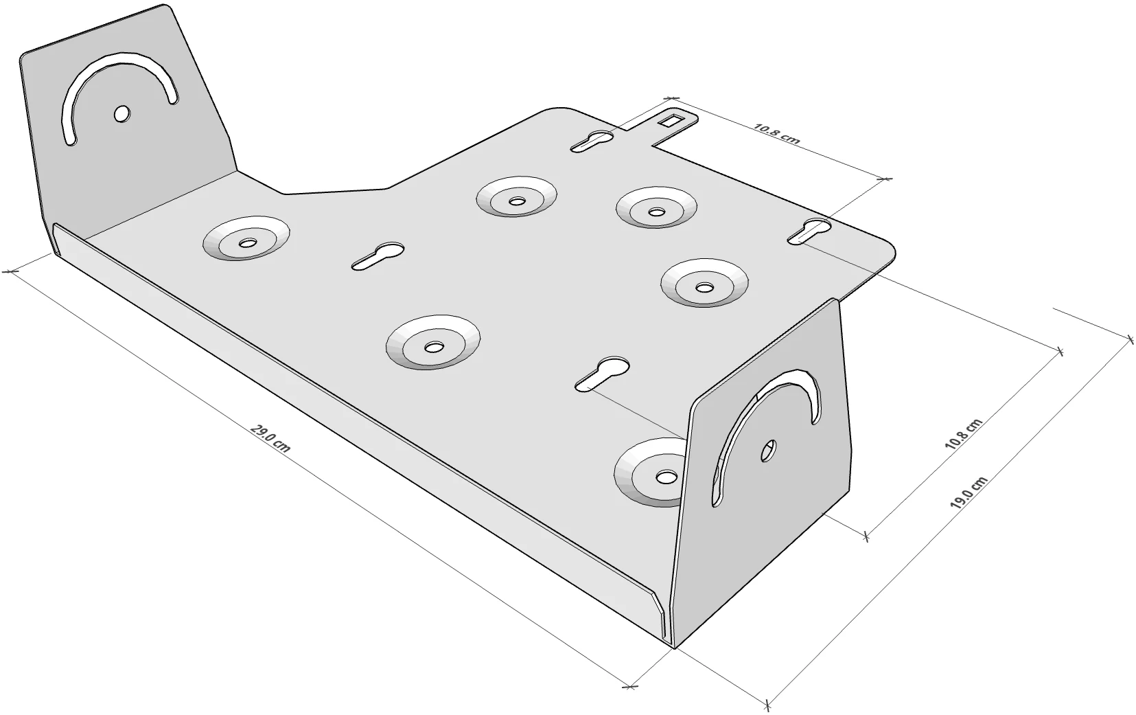 – Dimensions of the mount: W 290 mm × H 280 mm × D 121 mm.