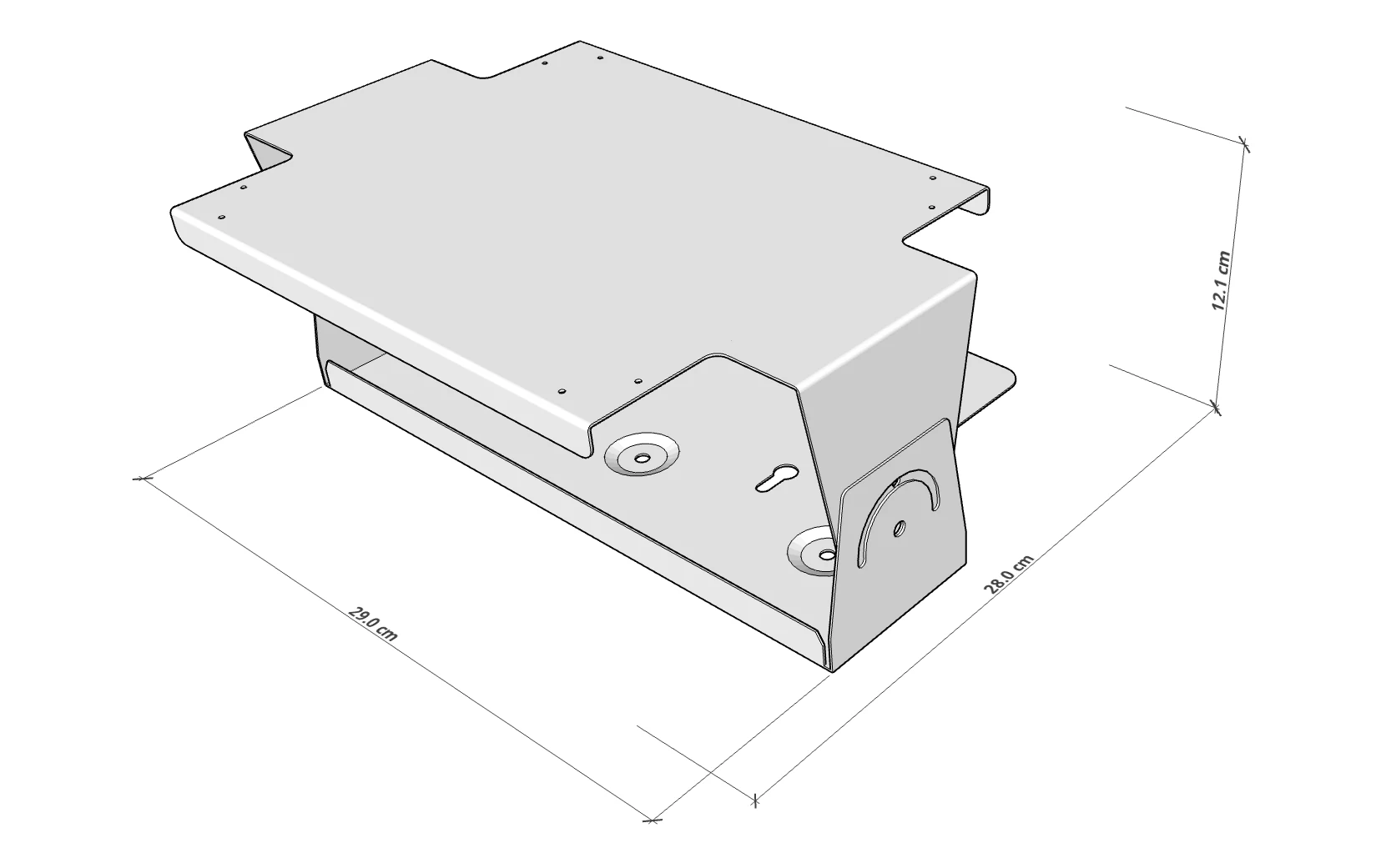 - 1 mm zinc-plated steel, powder-coated; standard color RAL 9010, other colors on request