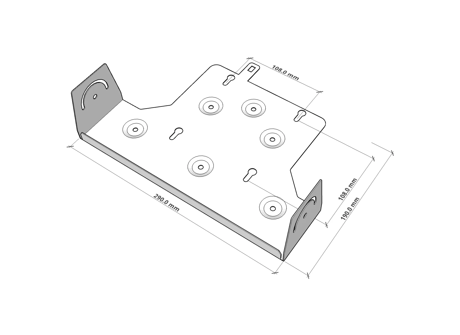 – Dimensions of the mount: W 290 mm × H 265.5 mm × D 120 mm.